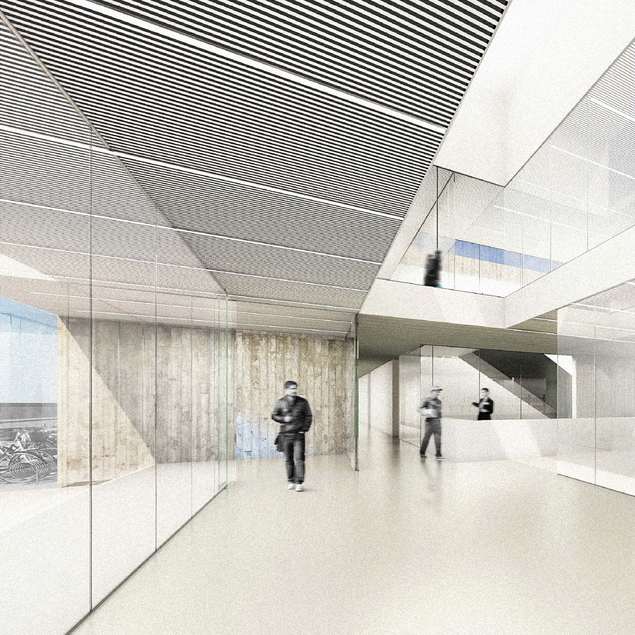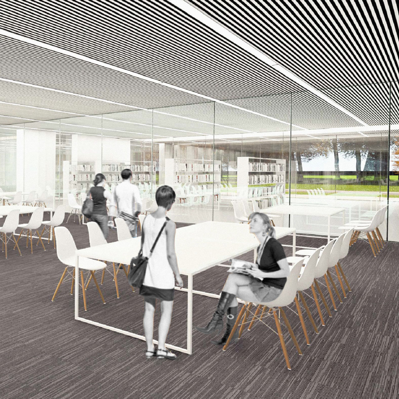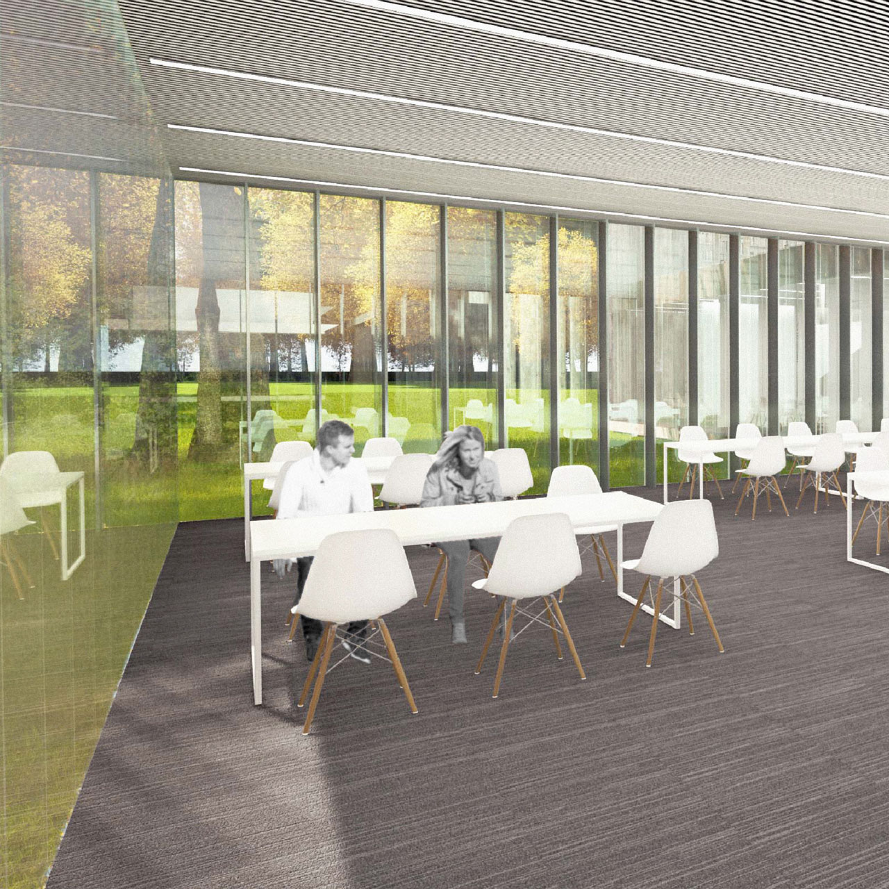 Questo progetto consiste nel rendere leggibili le funzioni e le loro interazioni con il sito in cui si trovano. Questo sito è racchiuso longitudinalmente tra il Canal du Midi e un grande viale di alberi che collega gli alloggi degli studenti al resto del campus. L'edificio rimane in questa lunga geometria accompagnando il pedone e invitandolo ad entrare attraverso un grande bovindo che rivela l'interno e mette il Canal du Midi sullo sfondo. Questa facciata sequenzia così il percorso esterno e partecipa alla transizione tra gli alloggi e gli spazi dedicati al tempo di studio.